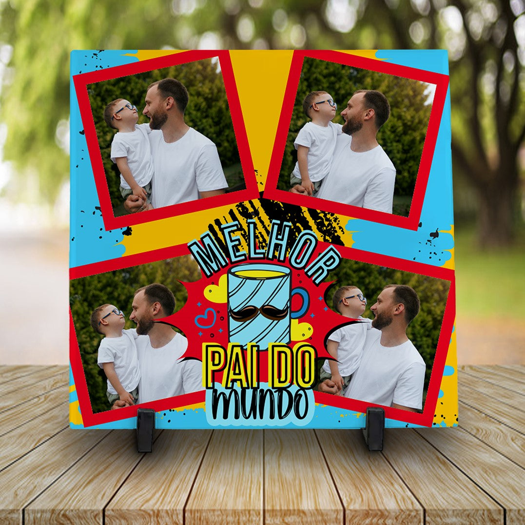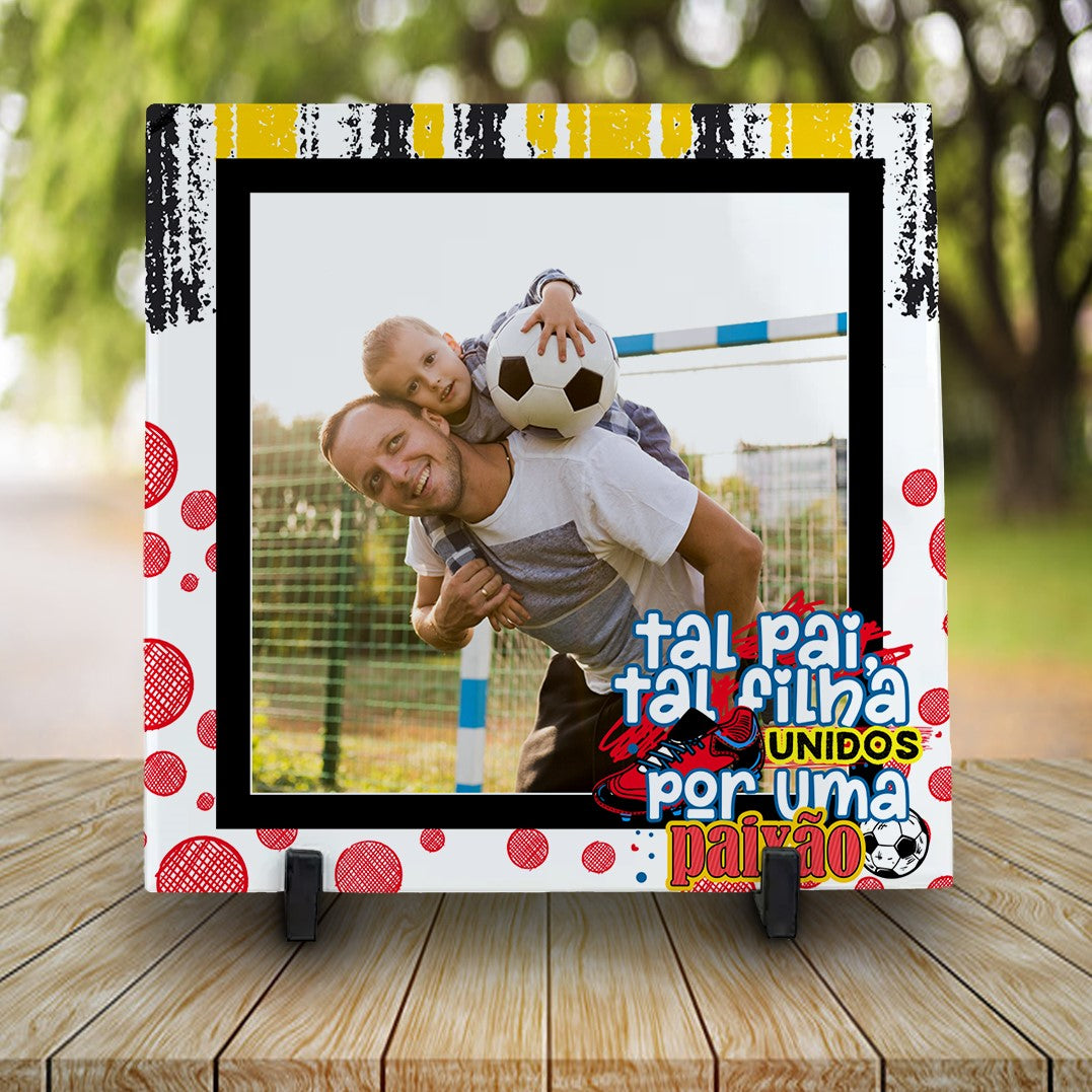 Eternize momentos especiais com este azulejo personalizado. Ideal para presentear em ocasiões como Dia do Pai, aniversários ou outras datas, ele combina criatividade e sofisticação numa peça decorativa única. Disponível com diversos designs temáticos, este azulejo é perfeito para transformar as suas memórias em arte.