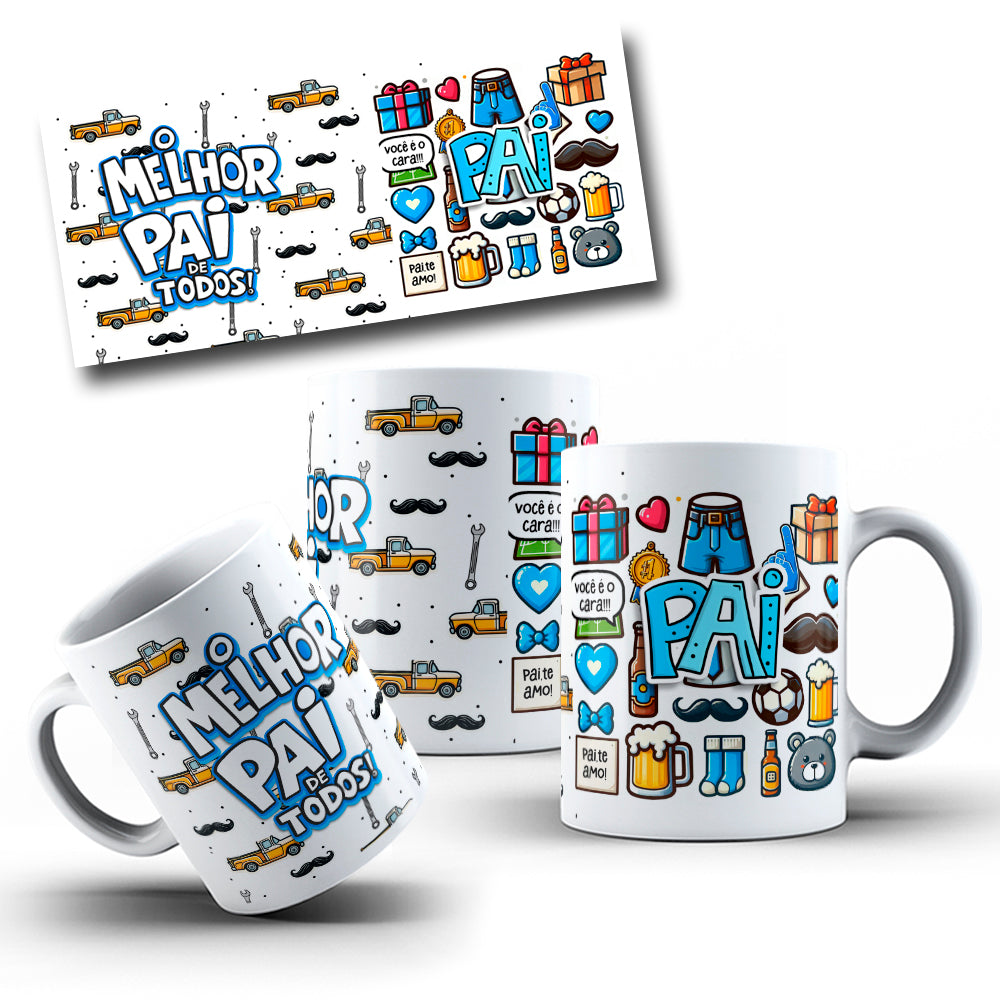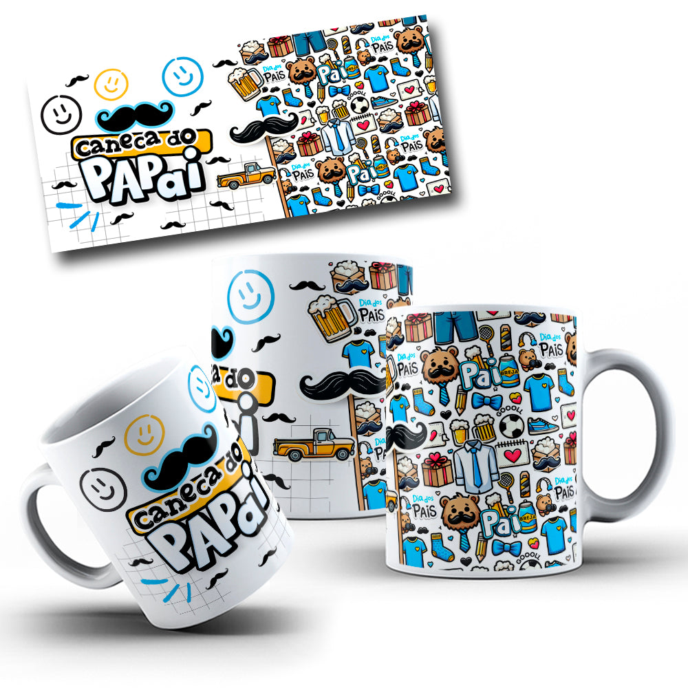Esta caneca personalizada é a escolha perfeita para demonstrar todo o carinho e admiração pelo seu pai. Com um design vibrante e divertido, repleto de elementos que representam o universo masculino, esta caneca tornará os momentos de café ou chá ainda mais especiais.