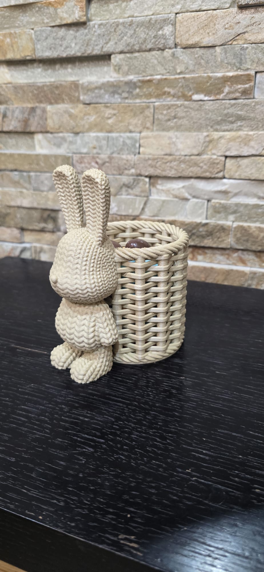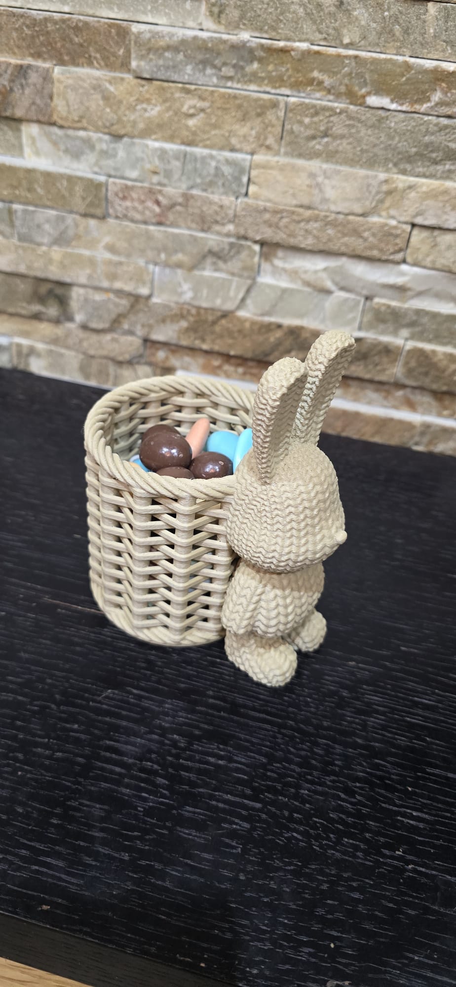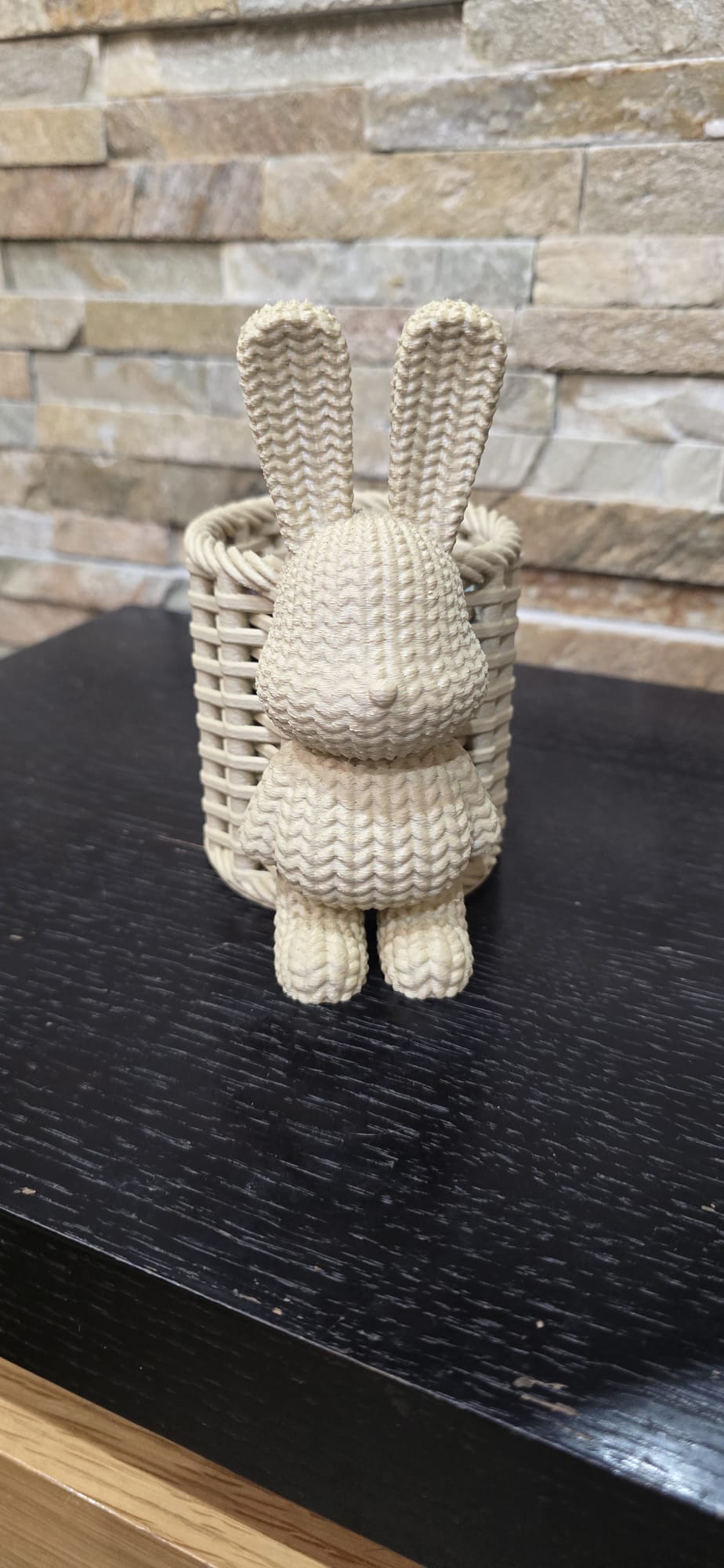 - Design: Um coelho detalhado em textura de tricô que agrega um toque acolhedor e divertido.