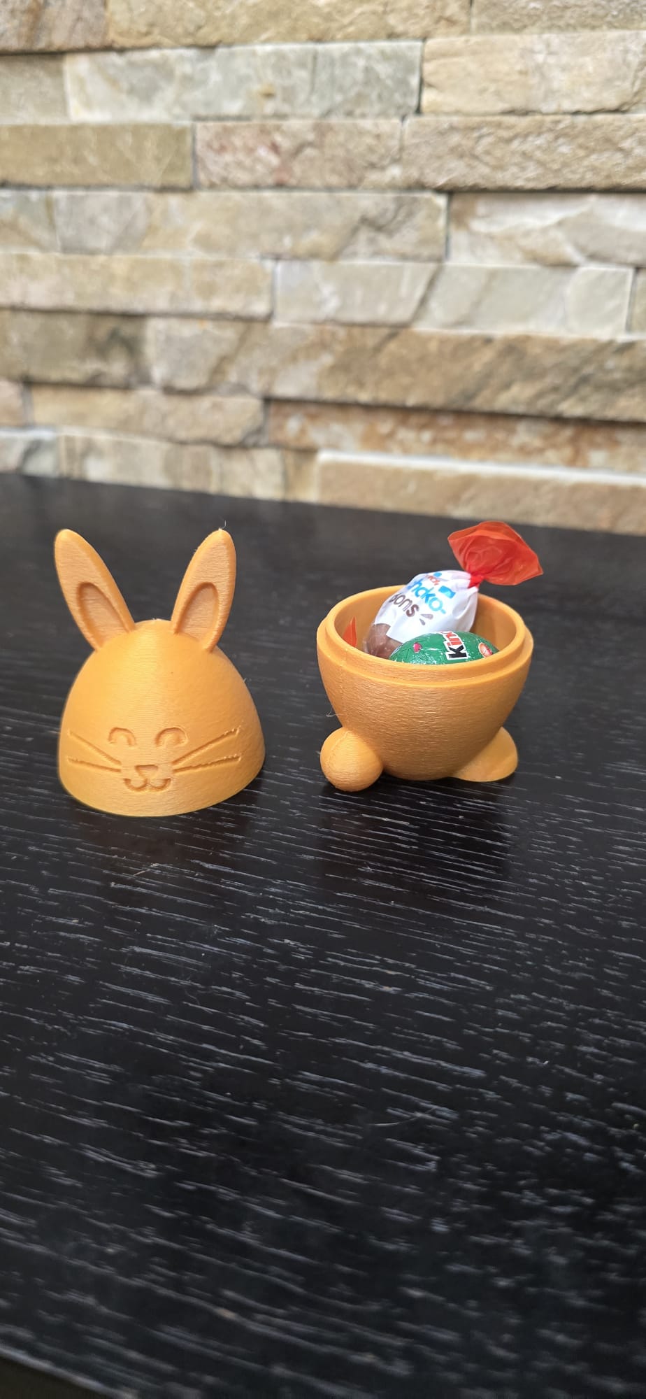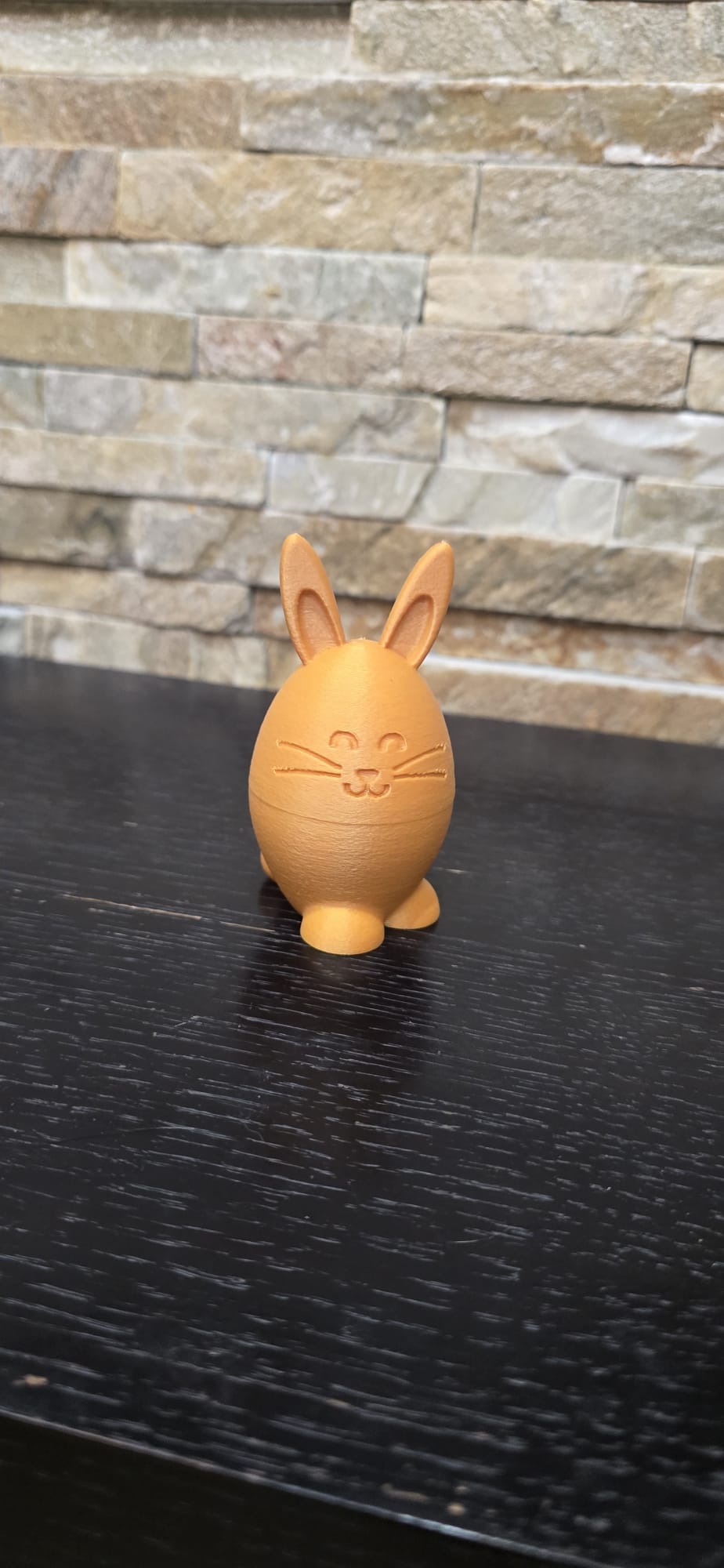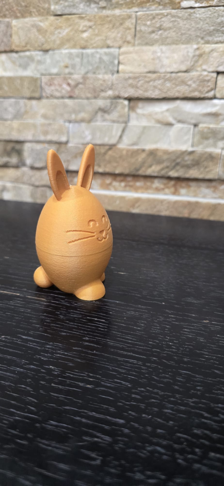 Adicione um toque divertido e funcional à sua Páscoa com este adorável coelho em forma de ovo! Impresso em 3D com material PLA biodegradável de alta qualidade, este coelhinho é perfeito para organizar pequenos objetos, doces, ou presentear com um mimo especial.