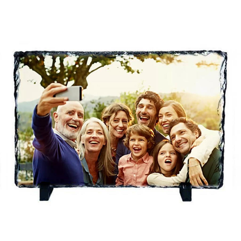 - Material: Pedra de xisto natural com acabamento polido para sublimação