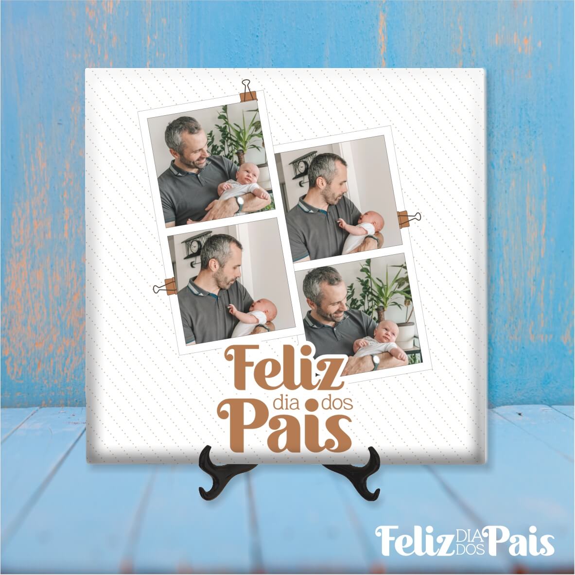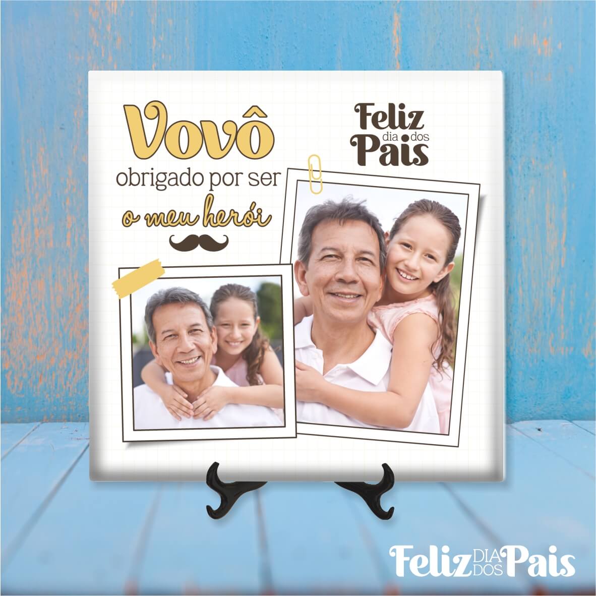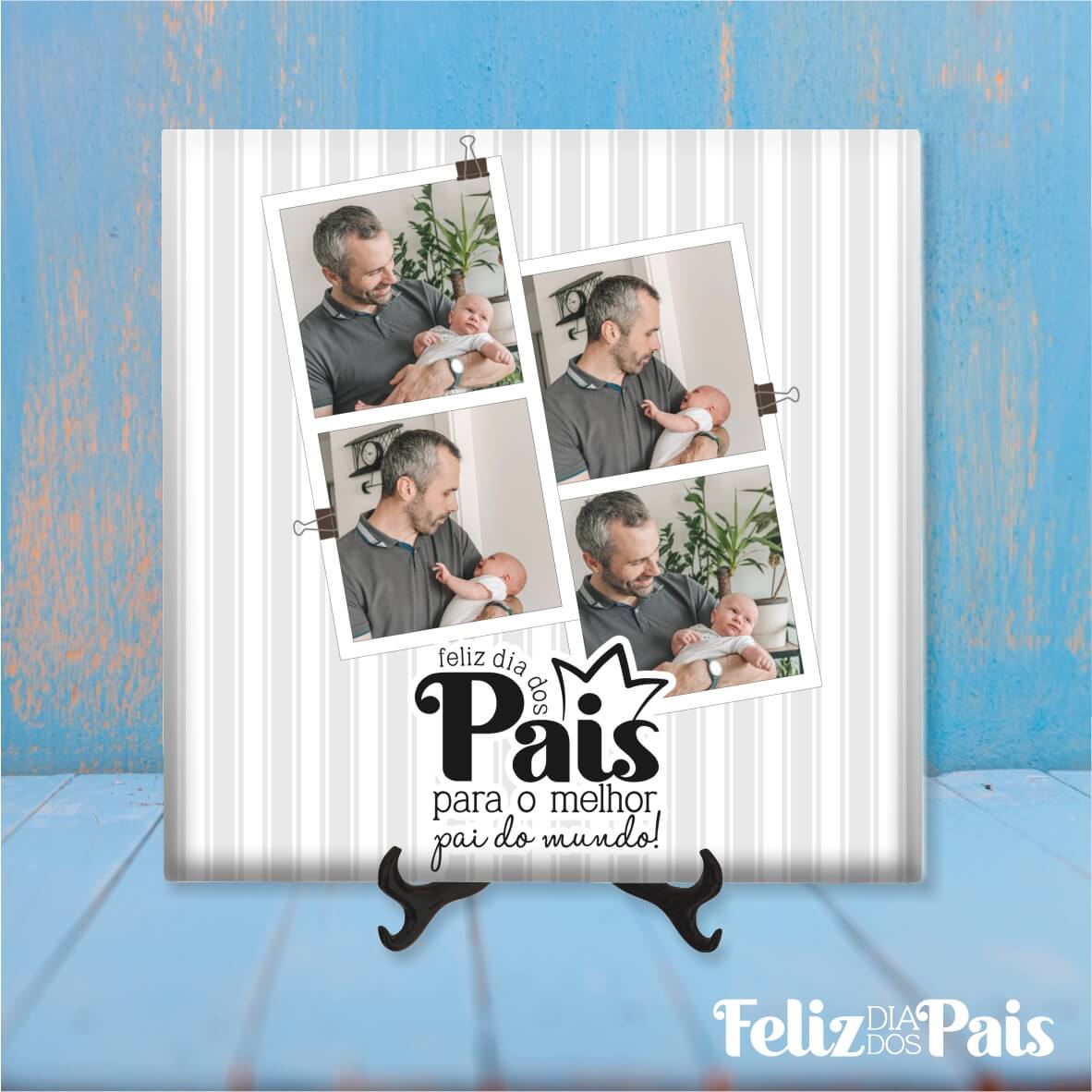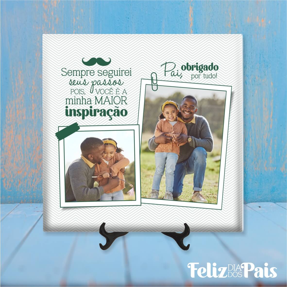 Celebre o Dia do Pai com um presente personalizado que eterniza os momentos mais felizes. Com texto e fotos personalizáveis, estes designs exclusivos podem ser aplicados em t-shirts, canecas ou azulejos decorativos, criando uma lembrança inesquecível.